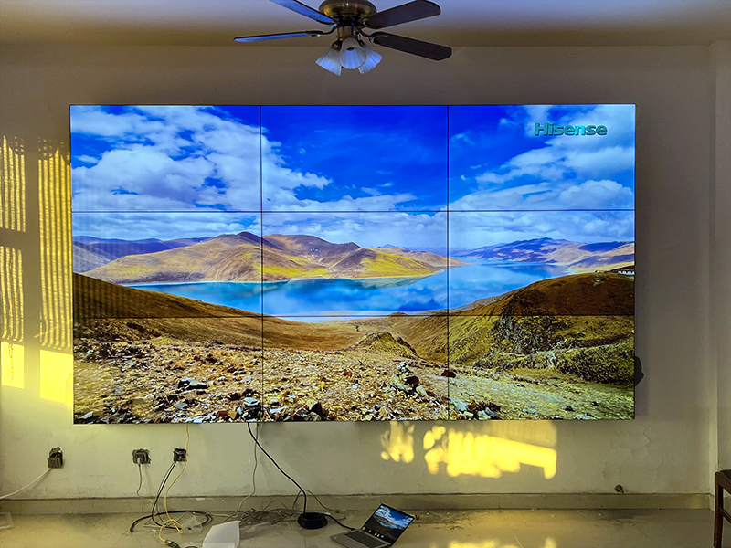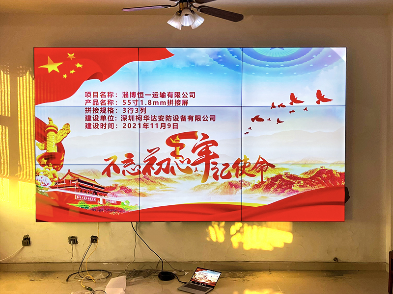 安防監(jiān)控在現(xiàn)代的生活工作中應(yīng)用非常廣泛,如應(yīng)急指揮部、學(xué)校、醫(yī)院、銀行、企業(yè)單位等場合都會設(shè)立一個監(jiān)控室,并在室內(nèi)顯示終端需要一個顯示屏幕用來實時呈現(xiàn)攝像頭所記錄的圖像。由于這類型的監(jiān)控室安置的監(jiān)控點數(shù)量較多,需要在顯示屏幕上分屏顯示各個點的圖像,還需要全天連續(xù)開機(jī)。深圳柯華達(dá)針對淄博恒一運(yùn)輸有限公司的項目要求采用了55寸1.8mm3*3拼縫,由處理器、電視墻機(jī)柜交付使用。