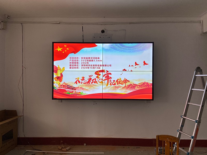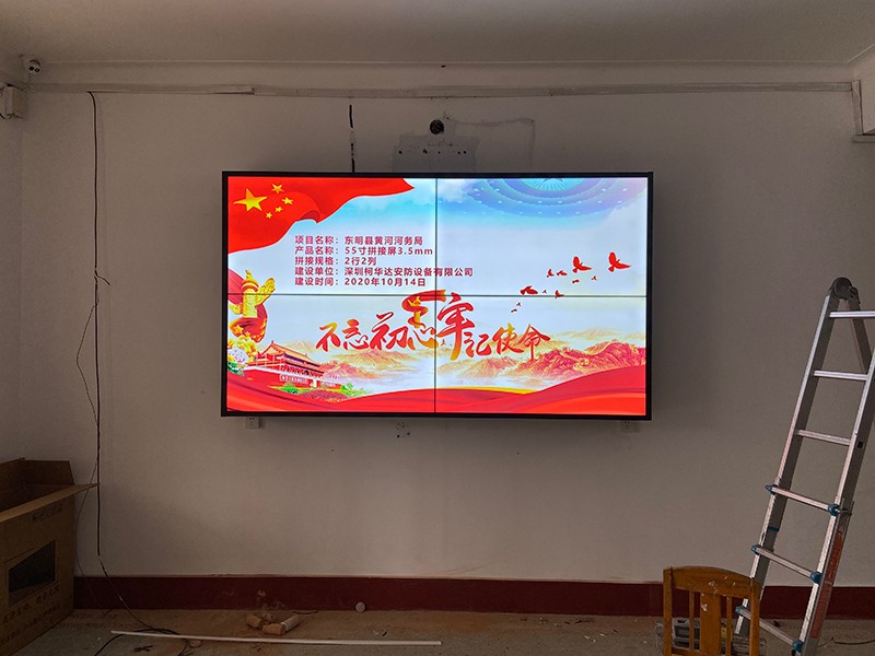 安防監(jiān)控在現(xiàn)代的生活工作中應用非常廣泛,如應急指揮部、學校、醫(yī)院、銀行、企業(yè)單位等場合都會設立一個監(jiān)控室,并在室內顯示終端需要一個顯示屏幕用來實時呈現(xiàn)攝像頭所記錄的圖像。由于這類型的監(jiān)控室安置的監(jiān)控點數(shù)量較多,需要在顯示屏幕上分屏顯示各個點的圖像,還需要全天連續(xù)開機。深圳柯華達公司針對東明縣黃河河務局的項目要求制定了55寸3.5mm拼縫2*2共計4臺的液晶拼接屏排列,由漢思處理器交付使用。