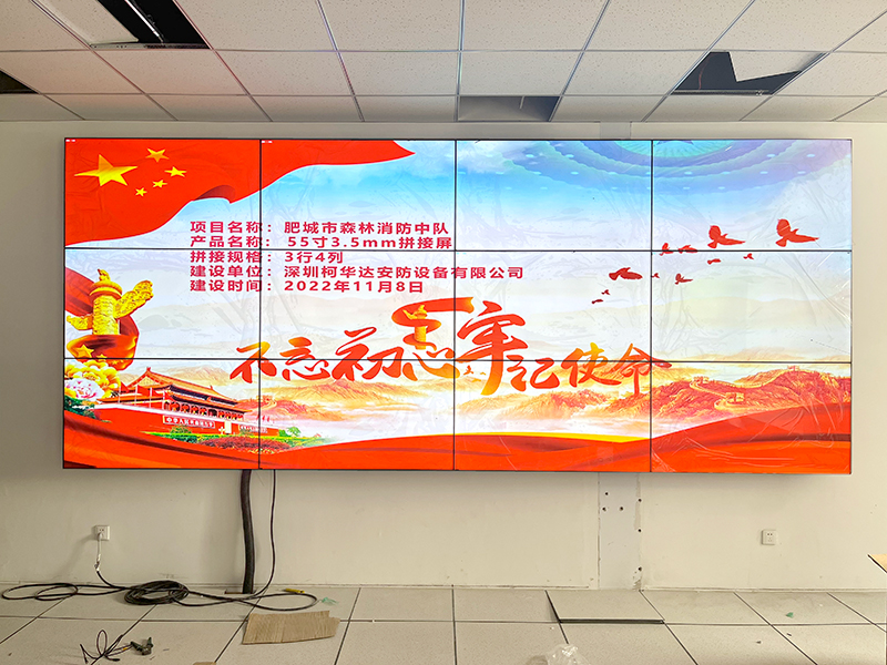 監(jiān)控室安置的監(jiān)控點(diǎn)數(shù)量較多,需要在顯示屏幕上分屏顯示各個(gè)點(diǎn)的圖像,還需要全天連續(xù)開(kāi)機(jī),液晶拼接屏很好的解決了這一問(wèn)題。深圳柯華達(dá)針對(duì)肥城市森林消防中隊(duì)的項(xiàng)目要求采用了55寸3.5mm3×4,由處理器、液壓支架交付使用。