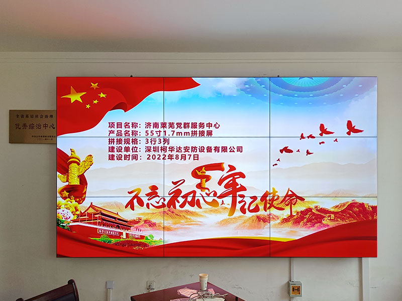 柯華達(dá)品牌力助萊蕪黨群服務(wù)中心,采購55寸液晶拼接屏3×3,漢思解碼器,高清動態(tài)畫質(zhì),多功能展廳、視頻會議、安防監(jiān)控、大數(shù)據(jù)中心,完美演繹智能化顯示終端。