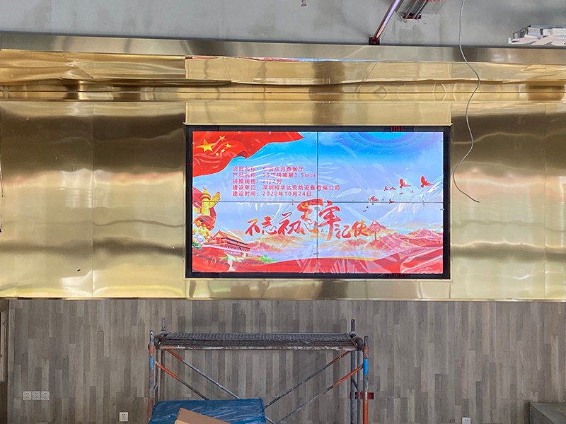 大屏幕拼接電視墻是作為各種信號(計算機、視頻、網絡等)的集中顯示終端,大屏幕投影顯示系統(tǒng)一定要具備高分辨率顯示、色彩均勻穩(wěn)定,并且能與各種信號良好兼容的特性。深圳柯華達安防設備有限公司依據東營柒月西餐廳的項目要求制定了55寸 3.5mm 2*2的液晶排列組合。