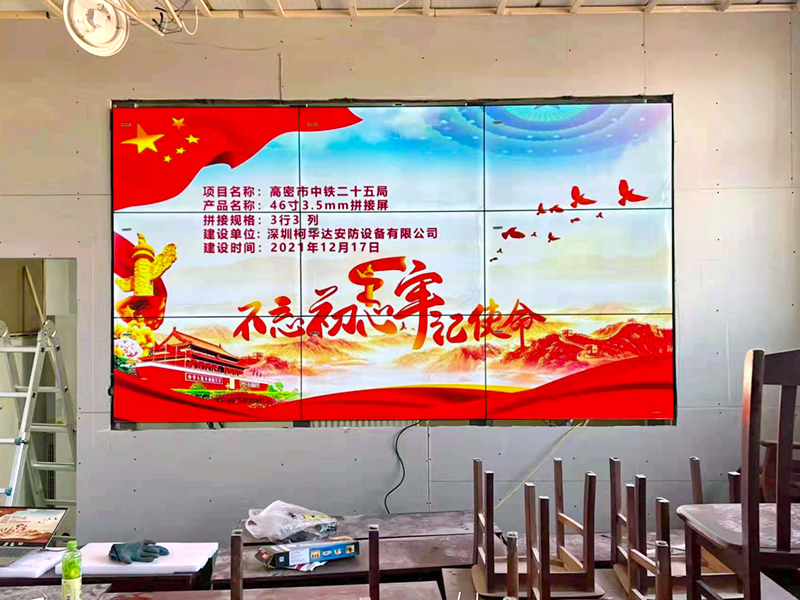 開(kāi)會(huì)中通過(guò)拼接大屏顯示系統(tǒng)進(jìn)行工作報(bào)告,可以實(shí)現(xiàn)圖、文、聲音、影像靈活展現(xiàn),充分調(diào)動(dòng)與會(huì)人員感官知覺(jué)的積極性,大大提高了會(huì)的效果。另外視頻會(huì)議的應(yīng)用讓越來(lái)越多的人開(kāi)始接受網(wǎng)絡(luò)視頻通信的方式取代面對(duì)面的交流。深圳柯華達(dá)針對(duì)高密市中鐵25局的項(xiàng)目要求采用了46寸3.5mm3×3拼縫,由處理器、電視墻機(jī)柜交付使用。
