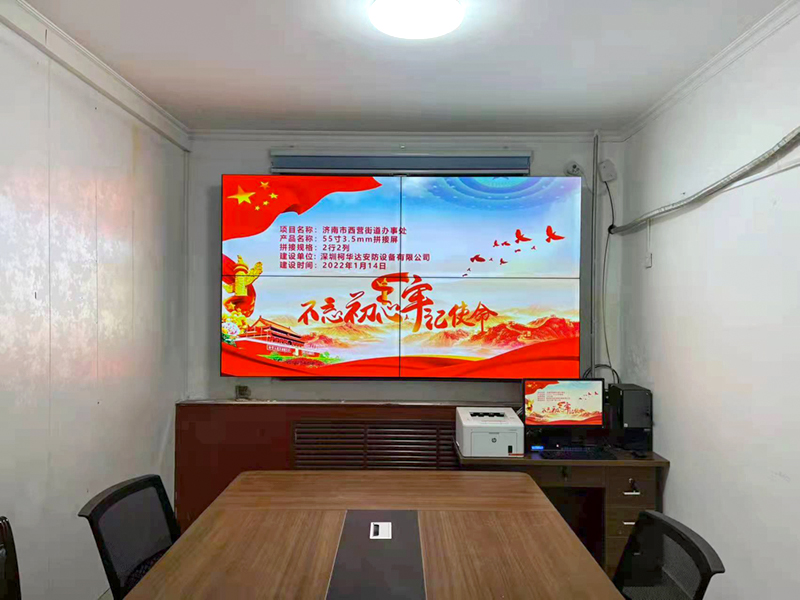 開會(huì)中通過拼接大屏顯示系統(tǒng)進(jìn)行工作報(bào)告,可以實(shí)現(xiàn)圖、文、聲音、影像靈活展現(xiàn),充分調(diào)動(dòng)與會(huì)人員感官知覺的積極性,大大提高了會(huì)的效果。另外視頻會(huì)議的應(yīng)用讓越來越多的人開始接受網(wǎng)絡(luò)視頻通信的方式取代面對(duì)面的交流。深圳柯華達(dá)針對(duì)濟(jì)南西營街道辦事處的項(xiàng)目要求采用了55寸3.5mm2×2拼縫,由處理器、電視墻機(jī)柜交付使用。