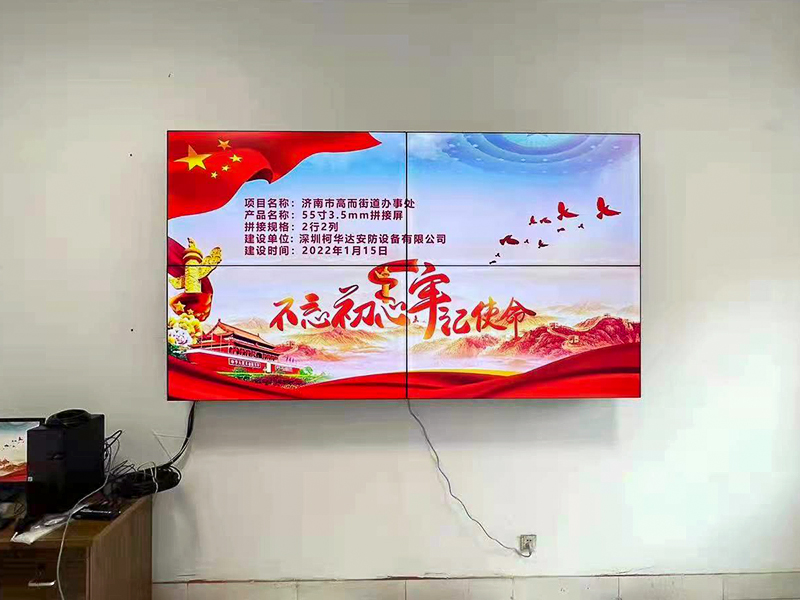 有了液晶拼接系統(tǒng),只需要在監(jiān)控室就可以呈現(xiàn)清晰的畫面和視覺(jué)效果,畫面可以實(shí)時(shí)切換。節(jié)省了大量的人力、物力。深圳柯華達(dá)針對(duì)濟(jì)南市高而街道辦事處的項(xiàng)目要求采用了55寸3.5mm2×2拼縫,由處理器、電視墻機(jī)柜交付使用。