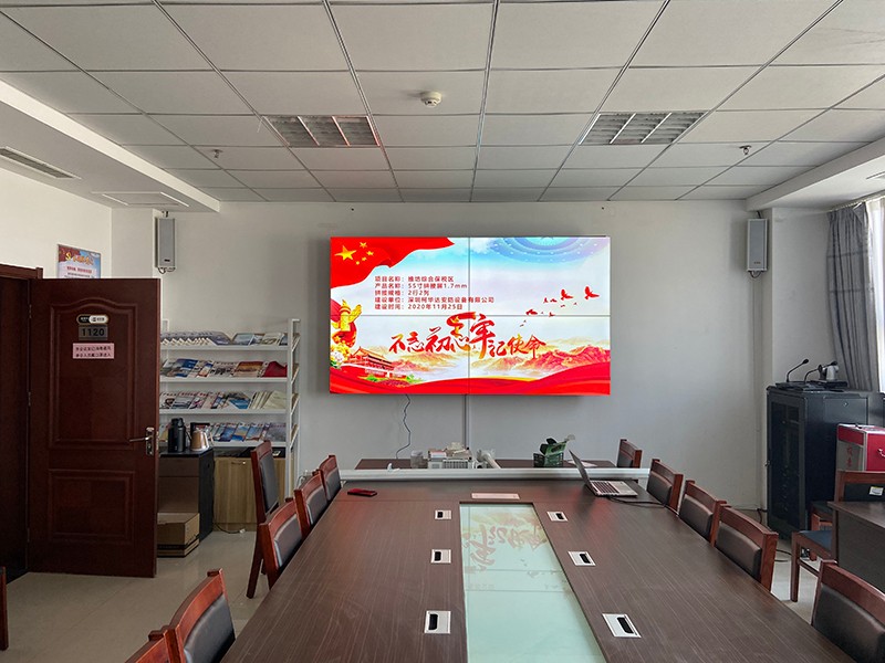 開會中通過拼接大屏顯示系統(tǒng)進行工作報告,可以實現(xiàn)圖、文、聲音、影像靈活展現(xiàn),充分調(diào)動與會人員感官知覺的積極性,大大提高了會的效果。另外視頻會議的應(yīng)用讓越來越多的人開始接受網(wǎng)絡(luò)視頻通信的方式取代面對面的交流。深圳柯華達針對濰坊市綜合保稅區(qū)的項目要求,制定了55寸1.7mm2*2的液晶排列組合,由漢思處理器、液壓支架交付使用。