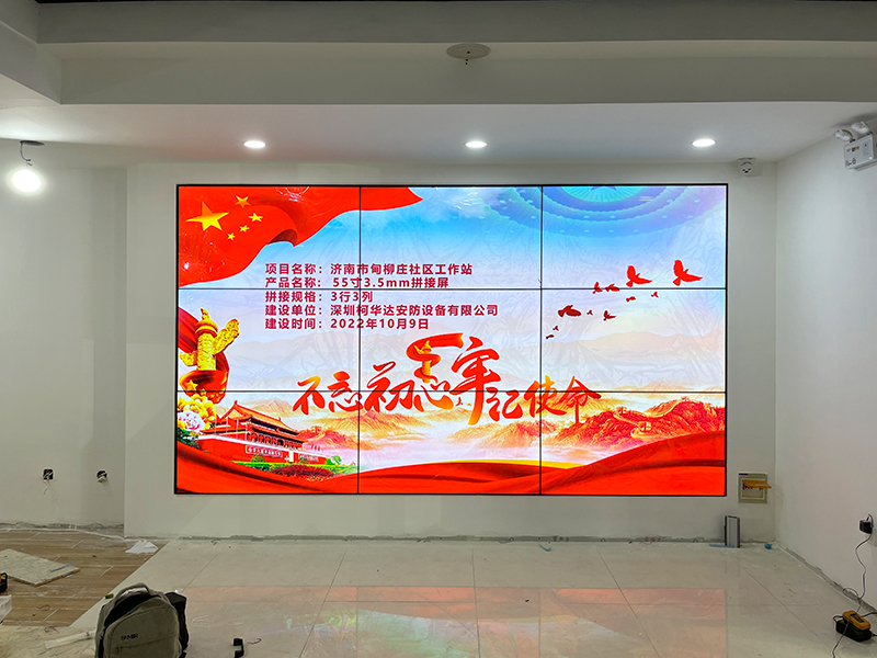 柯華達(dá)品牌力助濟(jì)南市甸柳莊社區(qū),采購55寸液晶拼接屏3×3,漢思解碼器,高清動(dòng)態(tài)畫質(zhì),多功能展廳、視頻會(huì)議、安防監(jiān)控、大數(shù)據(jù)中心,完美演繹智能化顯示終端。