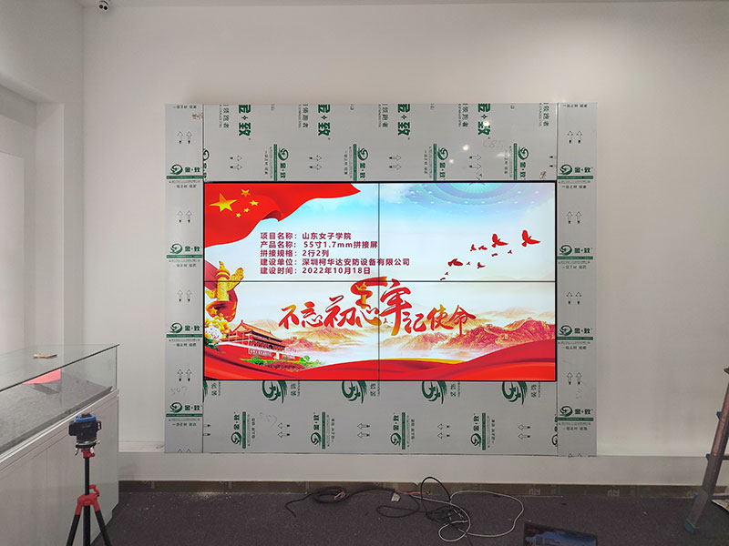 柯華達品牌力助山東女子學院,采購55寸液晶拼接屏2×2,漢思解碼器,高清動態(tài)畫質(zhì),多功能展廳、視頻會議、安防監(jiān)控、大數(shù)據(jù)中心,完美演繹智能化顯示終端。