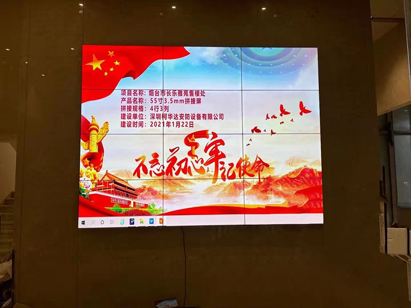 售樓處大屏幕基本上成為了每個(gè)樓盤的標(biāo)配,通過龐大的效果圖與鳥瞰圖給購買者一個(gè)暢想,從而促進(jìn)銷售。售樓中心對(duì)屏幕普遍有以下要求:觀看距離近;室內(nèi)安裝占空少;后期拆卸方便;技術(shù)穩(wěn)定顯示效果好;可多屏顯示。根據(jù)以上要求,深圳柯華達(dá)安防設(shè)備有限公司依據(jù)長(zhǎng)樂雅苑售樓處的項(xiàng)目要求制定為 55寸 3.5mm拼縫 4*3排列的液晶拼接組合以及壁掛式液壓支架的安裝方式。本方案的液晶屏顯示分辨率高近距離觀看也很清晰、技術(shù)非常穩(wěn)定、長(zhǎng)時(shí)間開機(jī)也不會(huì)壞點(diǎn);而這種安裝方式可最大程度的節(jié)省室內(nèi)空間,安裝、拆卸、維修最方便!