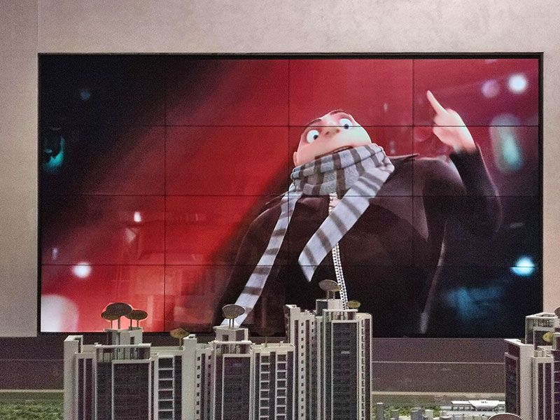 售樓處大屏幕基本上成為了每個(gè)樓盤的標(biāo)配,通過龐大的效果圖與鳥瞰圖給購買者一個(gè)暢想,從而促進(jìn)銷售。售樓中心對(duì)屏幕普遍有以下要求:觀看距離近;室內(nèi)安裝占空少;后期拆卸方便;技術(shù)穩(wěn)定顯示效果好;可多屏顯示。深圳柯華達(dá)針對(duì)廣東省汕尾市熹璟園售樓處的項(xiàng)目要求采用了49寸3.5mm5×5,由處理器、壁掛支架交付使用。