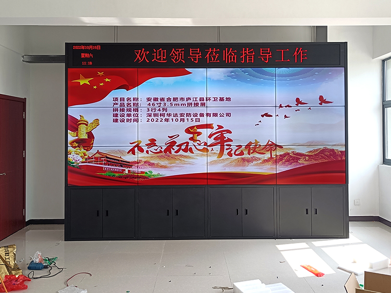 開(kāi)會(huì)中通過(guò)拼接大屏顯示系統(tǒng)進(jìn)行工作報(bào)告,可以實(shí)現(xiàn)圖、文、聲音、影像靈活展現(xiàn),充分調(diào)動(dòng)與會(huì)人員感官知覺(jué)的積極性,大大提高了會(huì)的效果。另外視頻會(huì)議的應(yīng)用讓越來(lái)越多的人開(kāi)始接受網(wǎng)絡(luò)視頻通信的方式取代面對(duì)面的交流。深圳柯華達(dá)針對(duì)安徽省合肥市廬江縣環(huán)衛(wèi)基地的項(xiàng)目要求采用了46寸3.5mm3×4,由處理器、落地機(jī)柜交付使用。