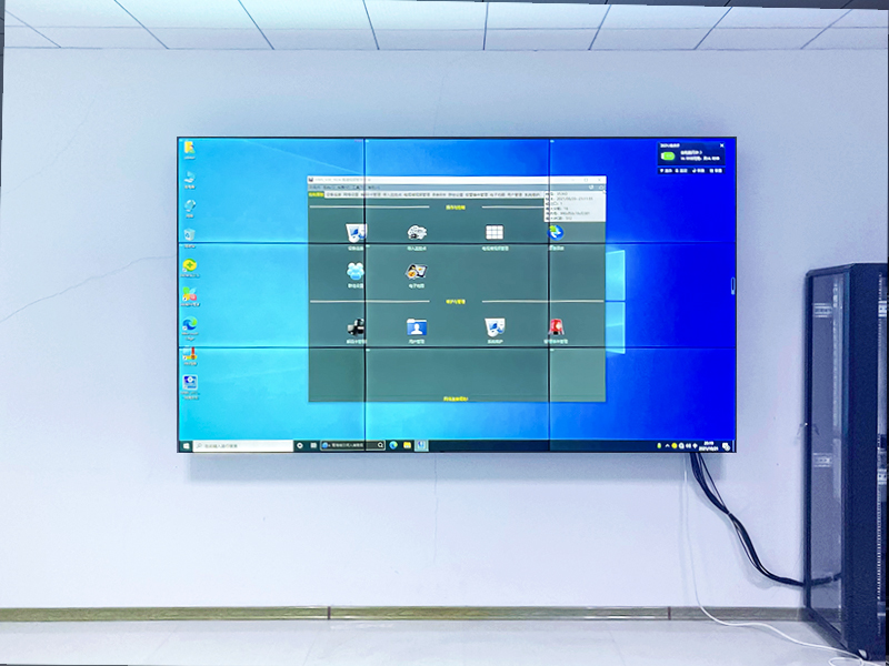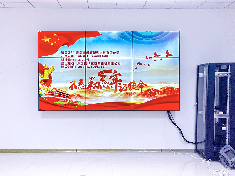 開會(huì)中通過拼接大屏顯示系統(tǒng)進(jìn)行工作報(bào)告,可以實(shí)現(xiàn)圖、文、聲音、影像靈活展現(xiàn),充分調(diào)動(dòng)與會(huì)人員感官知覺的積極性,大大提高了會(huì)的效果。另外視頻會(huì)議的應(yīng)用讓越來越多的人開始接受網(wǎng)絡(luò)視頻通信的方式取代面對(duì)面的交流。深圳柯華達(dá)針對(duì)青島金磐石新型材料有限公司的項(xiàng)目要求采用了46寸3.5mm3*3拼縫,由處理器、電視墻機(jī)柜交付使用。