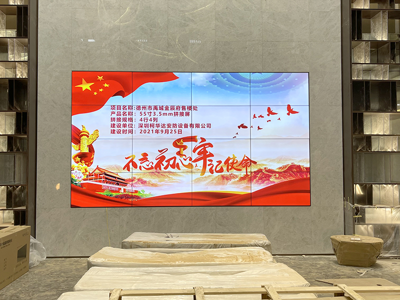 售樓處大屏幕基本上成為了每個(gè)樓盤的標(biāo)配,通過(guò)龐大的效果圖與鳥瞰圖給購(gòu)買者一個(gè)暢想,從而促進(jìn)銷售。售樓中心對(duì)屏幕普遍有以下要求:觀看距離近;室內(nèi)安裝占空少;后期拆卸方便;技術(shù)穩(wěn)定顯示效果好;可多屏顯示。深圳柯華達(dá)針對(duì)德州禹城金辰府售樓處的項(xiàng)目要求采用了55寸3.5mm4*4拼縫,由處理器、電視墻機(jī)柜交付使用。