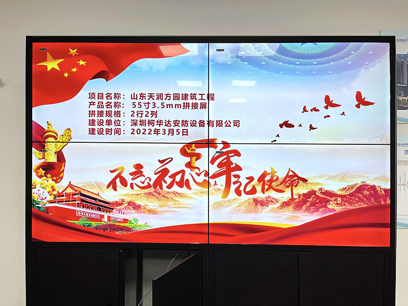 柯華達(dá)品牌力助山東天潤(rùn)方圓建筑工程,采購(gòu)55寸液晶拼接屏2×2,漢思解碼器,高清動(dòng)態(tài)畫質(zhì),多功能展廳、視頻會(huì)議、安防監(jiān)控、大數(shù)據(jù)中心,完美演繹智能化顯示終端。