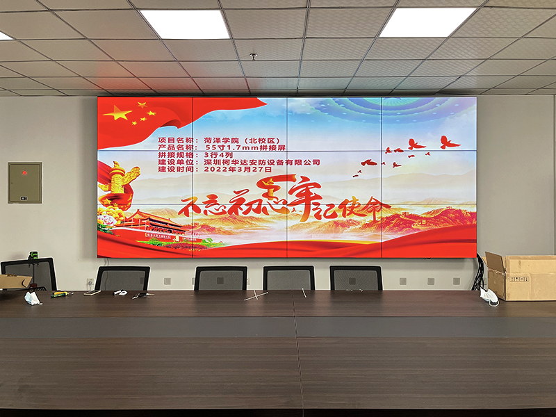 柯華達(dá)品牌力助菏澤市菏澤學(xué)院(北校區(qū)),采購(gòu)55寸液晶拼接屏3×4,漢思解碼器,高清動(dòng)態(tài)畫(huà)質(zhì),多功能展廳、視頻會(huì)議、安防監(jiān)控、大數(shù)據(jù)中心,完美演繹智能化顯示終端。