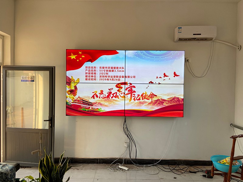 安防監(jiān)控在現(xiàn)代的生活工作中應(yīng)用非常廣泛,如應(yīng)急指揮部、學校、醫(yī)院、銀行、企業(yè)單位等場合都會設(shè)立一個監(jiān)控室,并在室內(nèi)顯示終端需要一個顯示屏幕用來實時呈現(xiàn)攝像頭所記錄的圖像。由于這類型的監(jiān)控室安置的監(jiān)控點數(shù)量較多,需要在顯示屏幕上分屏顯示各個點的圖像,還需要全天連續(xù)開機。神深圳柯華達公司給樂陵市環(huán)境督察大隊的項目制定為 55寸 3.5mm拼縫 2*2排列的液晶拼接組合以及壁掛式液壓支架的安裝方式。