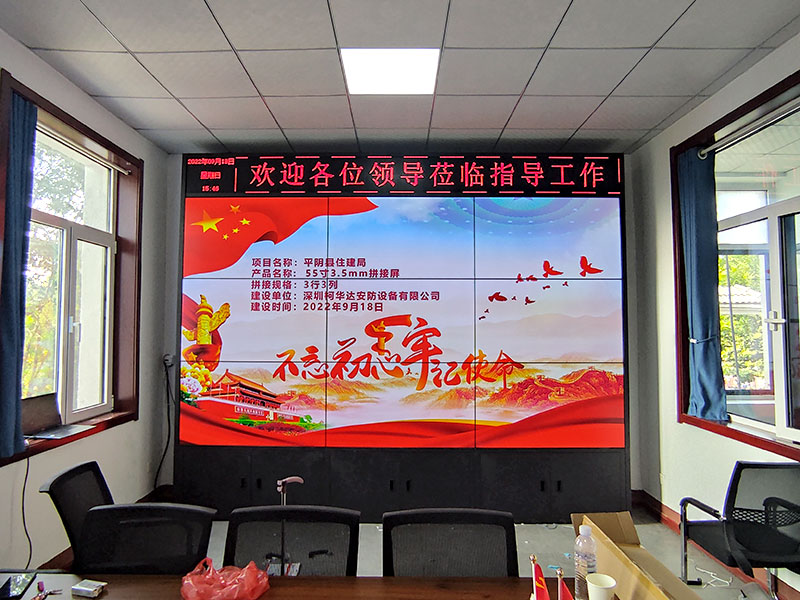 大屏幕拼接電視墻是作為各種信號(計算機、視頻、網(wǎng)絡(luò)等)的集中顯示終端,大屏幕投影顯示系統(tǒng)一定要具備高分辨率顯示、色彩均勻穩(wěn)定,并且能與各種信號良好兼容的特性。它通過快速獲取各種動態(tài)圖像信號。深圳柯華達針對平陰住建局的項目要求采用了55寸3.5mm3×3,由處理器、落地機柜交付使用。