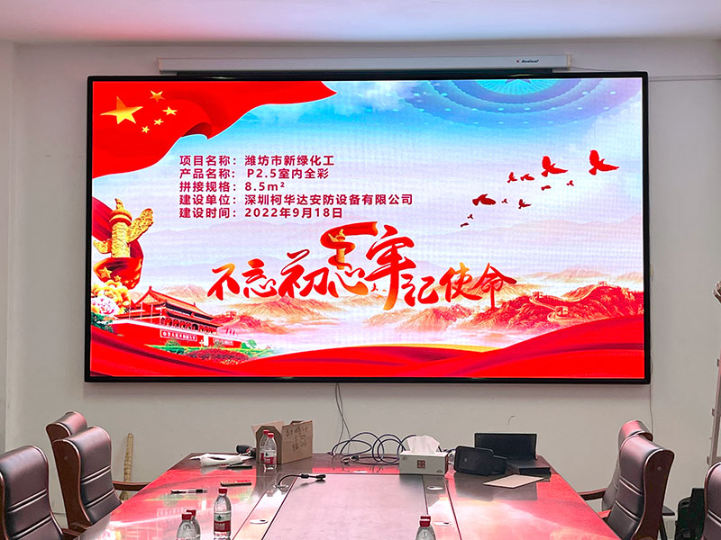 因LED為自發(fā)光原理,因此受環(huán)境光線的干擾與影響很小??筛鶕?jù)周圍環(huán)境明暗變化,畫面更加舒適,細(xì)節(jié)完美呈現(xiàn)。深圳柯華達(dá)針對濰坊新綠化工的項(xiàng)目要求采用了P2.5室內(nèi)全彩LED顯示屏8.5m²交付使用。