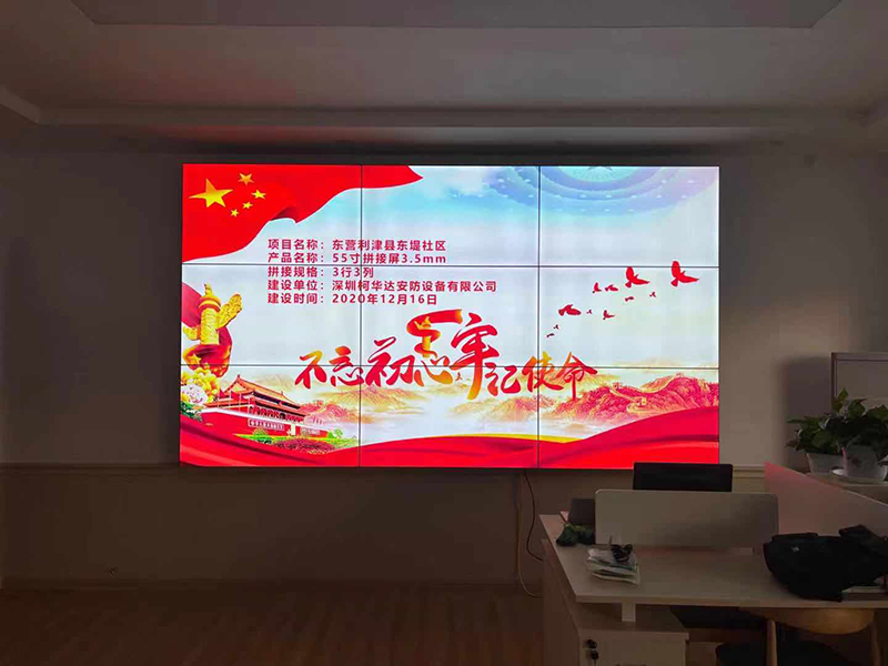 隨著國家經(jīng)濟的發(fā)展和社會文明程度的提高,國家的惠民政策陸續(xù)出臺,各地方政府響應號召力求在管轄區(qū)域內(nèi)建造美好的社會環(huán)境,許多社區(qū)開始了文明改造,例如在社區(qū)增加了液晶顯示屏來播放影視信息以及對休閑游樂設施的完善。深圳柯華達在山東省東營市利津東堤社區(qū)的項目中采用了55寸3.5㎜拼縫的拼接屏,共計9臺,由漢思處理器交付使用。