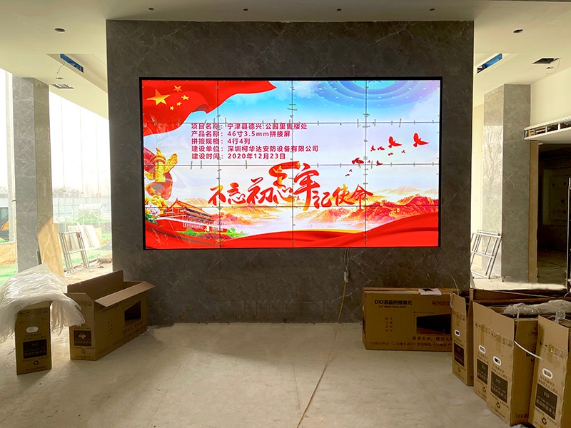 售樓處大屏幕基本上成為了每個(gè)樓盤(pán)的標(biāo)配,通過(guò)龐大的效果圖與鳥(niǎo)瞰圖給購(gòu)買(mǎi)者一個(gè)暢想,從而促進(jìn)銷(xiāo)售。售樓中心對(duì)屏幕普遍有以下要求:觀看距離近;室內(nèi)安裝占空少;后期拆卸方便;技術(shù)穩(wěn)定顯示效果好;可多屏顯示。根據(jù)以上要求,深圳柯華達(dá)依據(jù)寧津德興公園里售樓的項(xiàng)目要求,制定了46寸 3.5mm拼縫 4*4排列的液晶拼接組合以及壁掛式液壓支架的安裝方式。本方案的液晶屏顯示分辨率高近距離觀看也很清晰、技術(shù)非常穩(wěn)定、長(zhǎng)時(shí)間開(kāi)機(jī)也不會(huì)壞點(diǎn);而這種安裝方式可最大程度的節(jié)省室內(nèi)空間,安裝、拆卸、維修最方便!