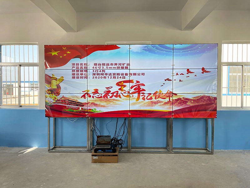安防監(jiān)控在現(xiàn)代的生活工作中應(yīng)用非常廣泛,如應(yīng)急指揮部、學(xué)校、醫(yī)院、銀行、企業(yè)單位等場合都會設(shè)立一個監(jiān)控室,并在室內(nèi)顯示終端需要一個顯示屏幕用來實(shí)時呈現(xiàn)攝像頭所記錄的圖像。由于這類型的監(jiān)控室安置的監(jiān)控點(diǎn)數(shù)量較多,需要在顯示屏幕上分屏顯示各個點(diǎn)的圖像,還需要全天連續(xù)開機(jī)。深圳柯華達(dá)針對招遠(yuǎn)界河礦業(yè)的項(xiàng)目要求,制定了46寸3.5mm3*4的液晶排列組合,由漢思處理器、落地支架交付使用。