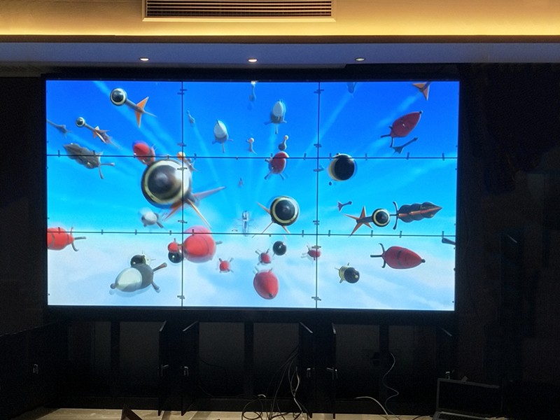 液晶拼接屏的高清晰度、高亮度受到了酒店客人喜愛,特別是對代表品牌形象、體現(xiàn)進級功能的視頻設(shè)備要求越來越高的商務(wù)客人的高度青睞,液晶拼接產(chǎn)品是將目前最卓越的高清晰度、高亮度與高色域的液晶顯示技術(shù)、嵌入式硬件拼接技術(shù)、多屏圖像處理技術(shù)、信號切換技術(shù)等合為一體,形成一個擁有高亮度、高清晰度、低功耗、高壽命,先進的液晶拼接幕墻顯示系統(tǒng)。本次項目合作采用55寸 3.5mm 3X3 的液晶憑借組合,由漢思處理器、前維護液壓機柜交付使用。