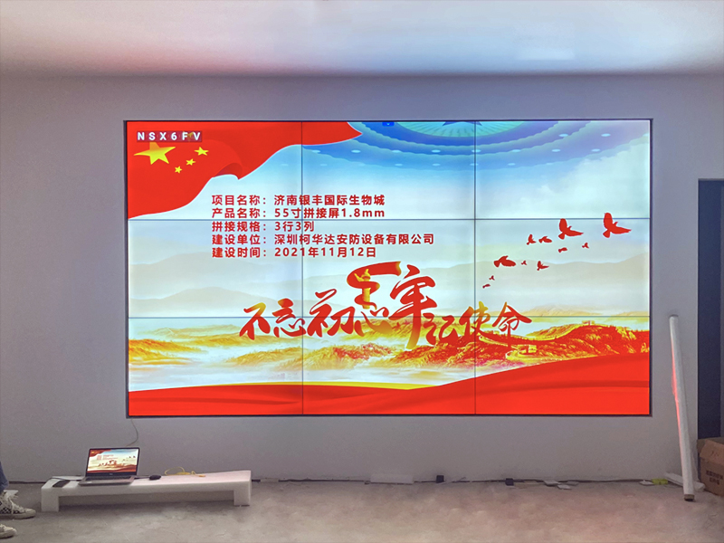開會中通過拼接大屏顯示系統(tǒng)進行工作報告,可以實現(xiàn)圖、文、聲音、影像靈活展現(xiàn),充分調(diào)動與會人員感官知覺的積極性,大大提高了會的效果。另外視頻會議的應(yīng)用讓越來越多的人開始接受網(wǎng)絡(luò)視頻通信的方式取代面對面的交流。深圳柯華達針對濟南銀豐國際生物城的項目要求采用了55寸1.8mm3*3拼縫,由處理器、電視墻機柜交付使用。