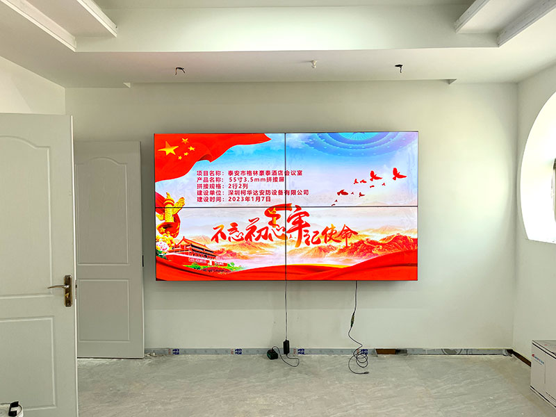 柯華達品牌力助泰安市格林豪泰酒店會議室,采購55寸液晶拼接屏2×2,漢思解碼器,高清動態(tài)畫質(zhì),多功能展廳、視頻會議、安防監(jiān)控、大數(shù)據(jù)中心,完美演繹智能化顯示終端。
