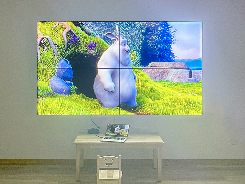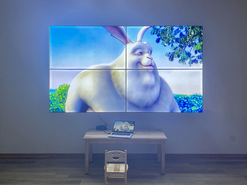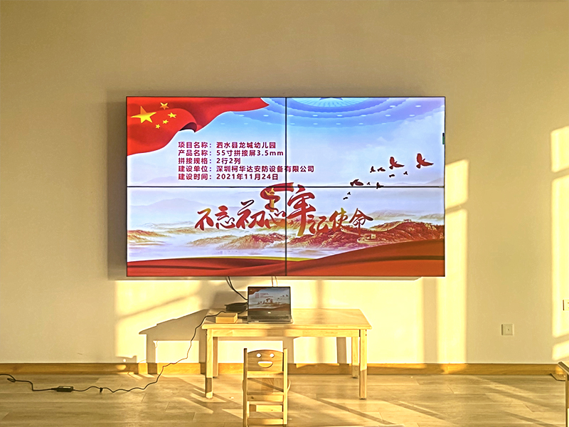 我國教育事業(yè)再不斷的提升,同時也帶動了計算機網(wǎng)絡(luò)及顯示設(shè)備的快速發(fā)展,拼接大屏幕顯示以其圖文并茂、簡單易用等優(yōu)點在教育教學中也得到了廣泛的應(yīng)用。深圳柯華達針對泗水龍城幼兒園的項目要求采用了55寸3.5mm2*2拼縫,由處理器、電視墻機柜交付使用。