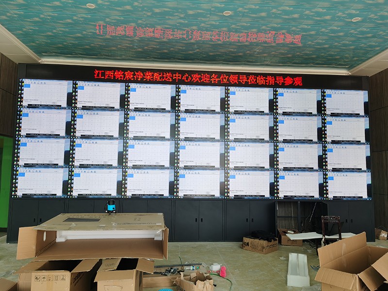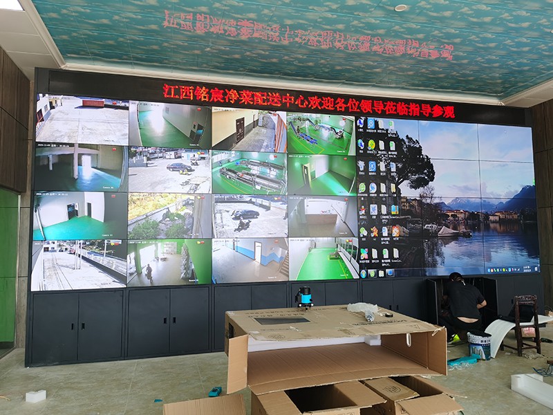 有了液晶拼接系統(tǒng),只需要在監(jiān)控室就可以呈現(xiàn)清晰的畫面和視覺效果,畫面可以實(shí)時(shí)切換。節(jié)省了大量的人力、物力。深圳柯華達(dá)依據(jù)江西銘宸凈菜配送中心的項(xiàng)目項(xiàng)目要求,制定了55寸3.5mm4*7的液晶拼接組合,由漢思處理器、電視墻機(jī)柜交付使用。